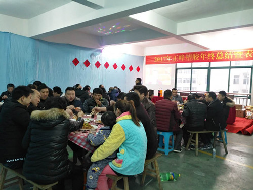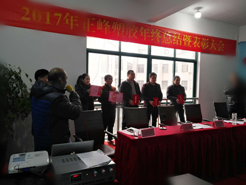 1月30日下午,正峰塑胶2017年年终总结暨表彰大会隆重召开?;嵘希谱芫矶怨?017年的各项工作进行了总结点评。各部门经理上台汇报了本部门2017年的工作情况,和2018年的工作计划。同时对年度优秀员工进行了表彰,发放了证书和奖金。董事长布置了2018年的工作任务,并对公司未来发展方向做了远景规划,鼓励大家在2018年工作中开拓进取,不断创新,更上一个台阶!(王甫)