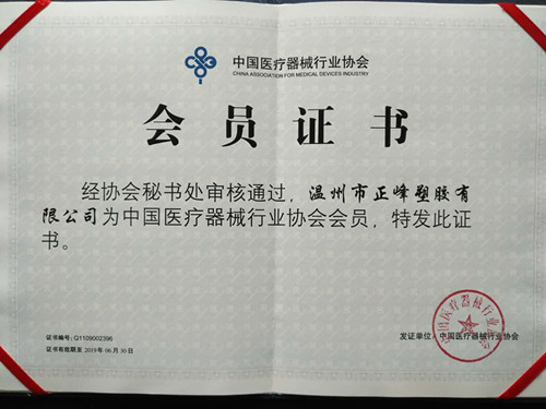 热烈祝贺正峰塑胶顺利通过审核,正式成为中国医疗器械行业协会会员。